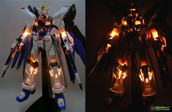 หุ่นประกอบ Gunpla ตัวนี้ เป็นกันพลาที่ไม่ธรรมดา มีความพิเศษกว่า 1/60 รุ่นปกติทั่ว ๆ ไป โดยการออกแบบของหุ่นตัวนี้ จะมี 2 โหมดด้วยกัน คือ โหมด Normal Mode กับ Lightening Edition Mode ซึ่งเป็นภายในตัวหุ่นจะมีวงจรไฟติดอยู่ตามจุดต่าง ๆ ไม่ว่าจะที่ หัว , หน้าอก , ข้อพับแขน หรือ ข้อพับขา เป็นต้น ทำให้ดูมีลูกเล่นเพิ่มเติมเข้ามาทำให้ดูสวยงาม โดยที่เราไม่ต้องมานั่งโมดิฟายเจาะติดไฟเข้าไปเอง สำหรับใครที่ชอบ Strike Freedom เป็นทุนเดิมอยู่แล้วล่ะก็…คงจะปฏิเสธเจ้า Strike Freedom ตัวนี้ ไม่ได้เลยทีเดียว