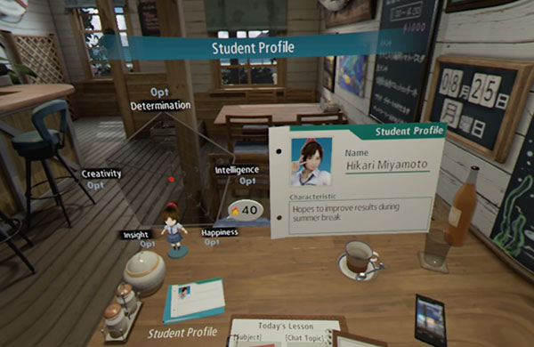 เริ่มต้นเกม ผู้เล่นจะอยู่ในร้านกาแฟที่เป็นหน้าไตเติ้ลหลัก โดยในหน้านี้จะมีคำสั่งการจัดการหลักคือ Student Profile, Prepare Lesson, Smartphone ซึ่งแต่ละคำสั่งจะแบ่งการใช้งานดังนี้