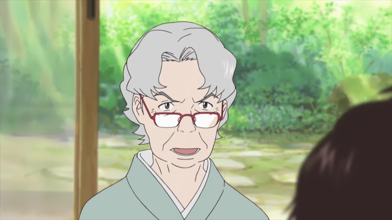 สตรีวัย 89 ปี เป็นย่าทวดของนัตสึกิ และเป็นหัวหน้าตระกูลจินโนะอุจิซึ่งเป็นตระกูลขุนศึกแต่โบราณ แม้วัยร่วงโรย แต่เธอก็คงเป็นหัวใจของบ้าน และคอยธำรงความรักใคร่กลมเกลียวของวงศ์วานเสมอมา เพราะสืบเชื้อสายขุนนางและเป็นครูบาอาจารย์มาก่อน นางจึงมีความสนิทชิดเชื้อกับผู้ใหญ่นายโตจำนวนมากในสังคม