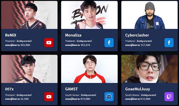 ในส่วนของอินฟลูเอนเซอร์ไทยนั้นเหล่าตัวท็อปๆชั้นนำอย่าง PojzPlaza, Willcomeback, Jairaw, PuiTarGrean, Ad-Aof TV, adk ก้องไก่กุ๊กๆๆ, ReMiX, Monaliza, Cyberclasher และ 007x ซึ่งแต่ละคนบอกเลยแค่เห็นชื่อก็ต้องกรีดร้องถึงฝีมือและความโหดในการเล่นเกมกันแน่นอน!