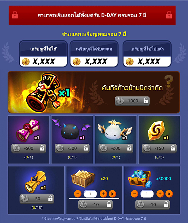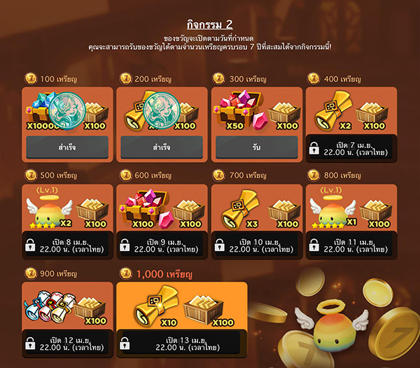 – ผู้เล่นทุกคนสามารถได้เหรียญครบรอบ 7 ปี ได้จากกิจกรรมที่กำหนดซึ่งสามารถแลกได้ที่ “ร้านแลกเหรียญครบรอบ 7 ปี” ตั้งแต่วันที่ 17 เมษายนนี้!