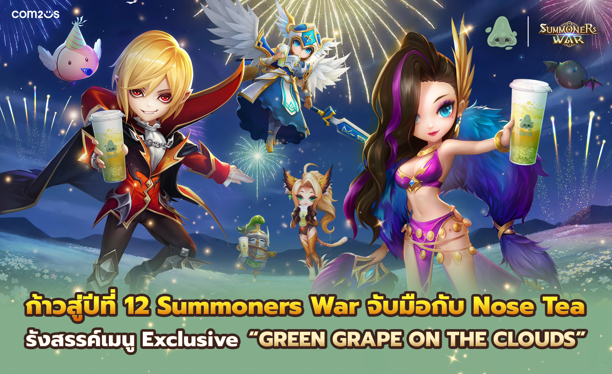 ครบรอบ 12 ปีทั้งที ไม่มีคำว่า “ธรรมดา” สำหรับ Summoners War แน่นอน ล่าสุดจับมือกับแบรนด์เครื่องดื่มชื่อดัง Nose Tea เปิดตัวคอลแลปสุดพิเศษ พร้อมเสิร์ฟเมนูเอ็กซ์คลูซีฟ “Green Grape On The Clouds” ที่ไม่ได้มอบแค่ความสดชื่น แต่ยังเป็นเครื่องดื่มสำหรับคนมีดวง มีเกม และมีของ