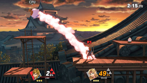 การกดท่าโจมตีของทุกตัวละครนั้นเหมือนกันทุกตัวคือ กดปุ่ม A หรือ B พร้อมดันอนาลอคทิศทาง ซึ่งท่าโจมตีของแต่ละตัวละครก็จะแตกต่างกันไป ซึ่งตอนเริ่มเกมส์จะซัดคู่ต่อสู้ให้ออกนอกฉากได้ยากมากเพราะจะกระเด็นไปไม่ไกล จะต้องพยายามสร้าง % ความเสียหาย ให้คู่ต่อสู้เยอะ จะช่วยให้ซัดให้คู่ต่อสู้ปลิวไปไกลยิ่งขึ้น