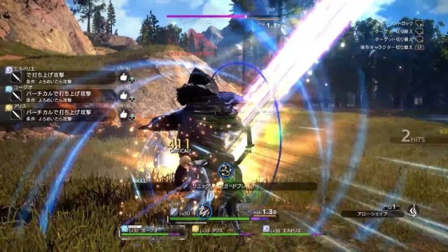 การต่อสู้ในเกมนี้ จะเป็นเกมแอคชั่นเรียลไทม์สไตล์ Monster Hunter ปะทะมอนสเตอร์ขนาดใหญ่ ที่ให้ผู้เล่นรวมทีมกับ AI เดินทางไปยังตามเส้นเรื่อง โดยเมื่อเล่นไปถึงจังหวะหนึ่ง ก็จะสามารถใช้ท่าไม้ตายประสานได้