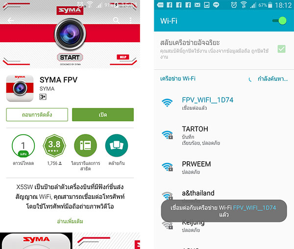 5. เข้าแอพ SYMA FPV แล้ว “START” เป็นอันเรียบร้อย