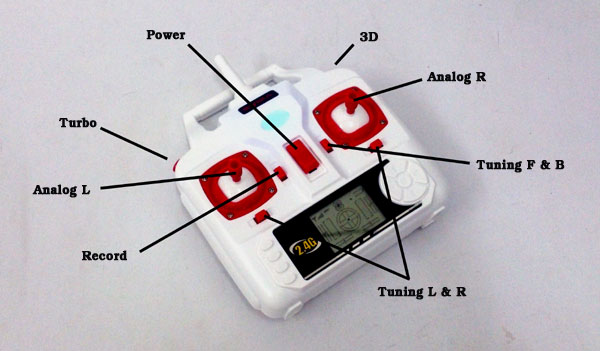 จอยบังคับแบบรีโมทคอนโทล ใช้ถ่าน AA จำนวน 4 ก้อน ในกล่องไม่แถมถ่านมาให้