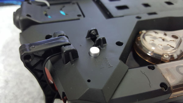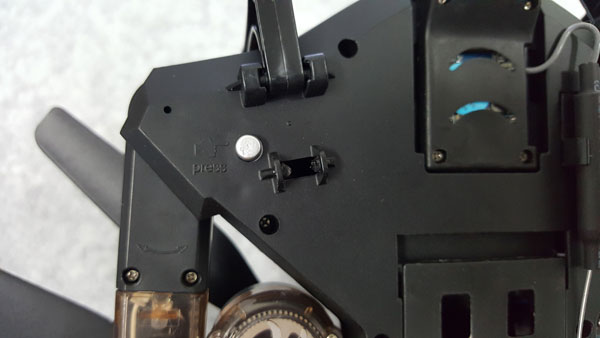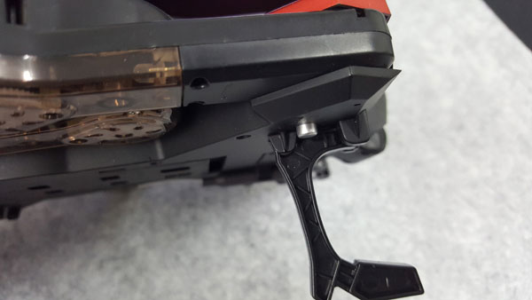 ปุ่มสีเงินที่อยุ่ด้านใต้ตัวเครื่อง จะเป็นปุ่มที่เอาไว้ปลดล๊อคเวลาจะพับปีกของโดรนเก็บนะครับ ถ้าไม่กดก่อนที่จะพับเก็บก็จะไม่สามารถเก็บได้