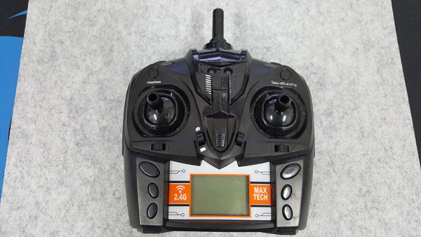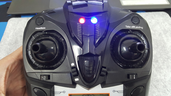 รูปทรงของรีโมทจะมีจอแสดงผล LED อยู่ด้านล่างของตัวบังคับเพื่อบอกสถานะการเชื่อมต่อ และสถานะของแบตเตอร์รี่ แต่ก็ไม่ได้ระเอียดอะไรมากนัก แต่ก็ทำให้รู้ว่าเชื่อมต่อกับโดรนแล้วหรือยัง และเหลือแบตเท่าไร