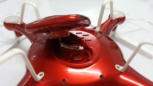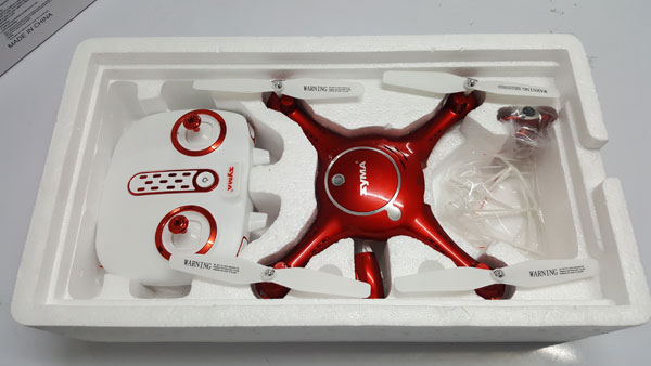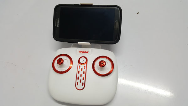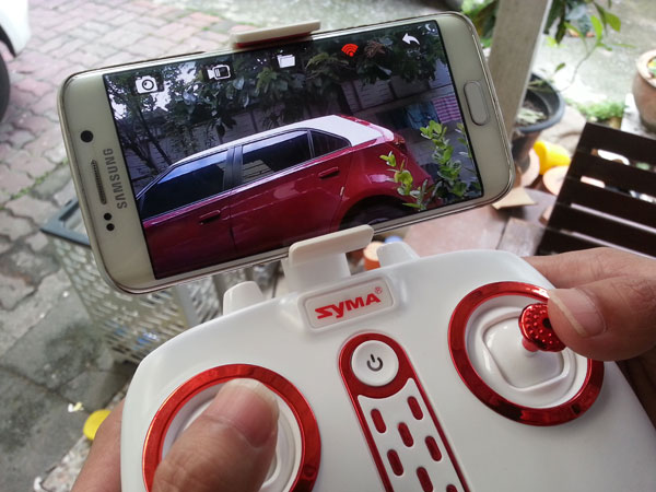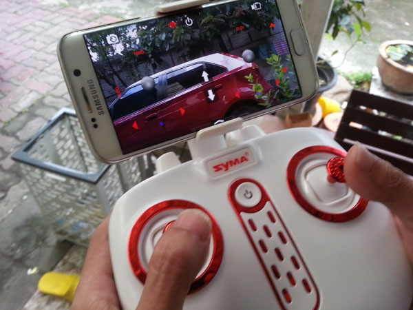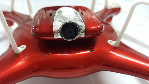 กล้องที่มากับโดรนรุ่น Syma X5UW จะเป็นรุ่นที่ทำงานกับแอพโทรศัพท์มือถือ เป็นการส่งภาพจากกล้องด้วยสัญญาณ Wifi ไปแสดงผลที่หน้าจอมือถือ แบบ Real Time แล้วสามารถเลือกกดถ่ายรูปหรือบันทึกวีดีโอเก็บเป็นไฟล์ไว้ที่โทรศัพท์ได้ด้วย