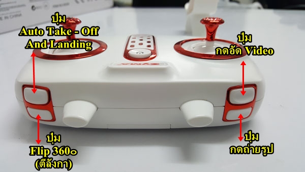 รุ่นนี่ตัวรีโมทจะพิเศษหน่อยคือ จะมีปุ่มที่ทำให้ได้ทั้ง Auto take-off and landing