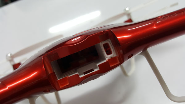2. ติดตั้งกล้องกับตัวโดรนให้เรียบร้อยแล้วเปิดสวิชโดรน สังเกตุไฟที่กล้องติด