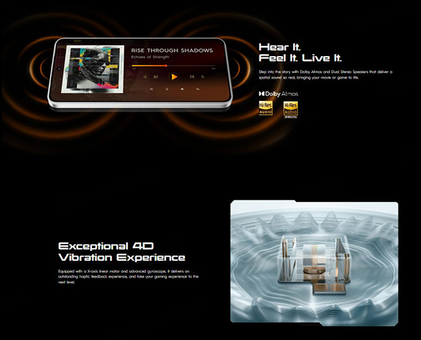 TECNO POVA 7 Ultra 5G มอบประสบการณ์ที่เหนือระดับด้วยระบบสั่น 4D Gaming Vibration ที่ตอบสนองทุกจังหวะการเล่นได้อย่างสมจริง ผสานพลังเสียงจากลำโพงคู่ระบบ Dolby Atmos พร้อมชุด ฟีเจอร์เกมมิ่งที่ปรับแต่งมาโดยเฉพาะสร้างสรรค์ประสบการณ์ภาพและเสียงที่สมบูรณ์แบบเพื่อเหล่านักสำรวจ และเกมเมอร์รุ่นใหม่ที่ต้องการความดื่มด่ำขั้นสุดในทุกช่วงเวลา