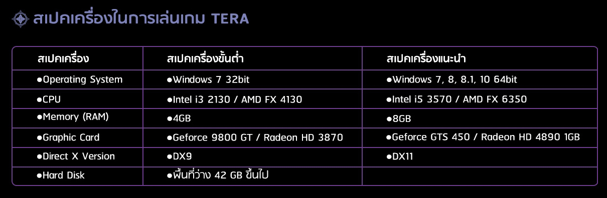 เว็บไซต์อย่างเป็นทางการ (PS4 / XBOX ONE) : http://tera.enmasse.com/