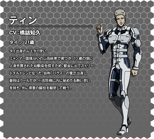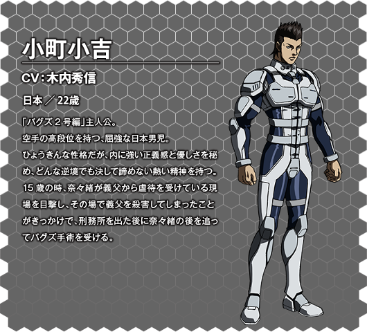 พระเอกของตอนพิเศษนี้ เขามีพลังจาก “ต่อหัวเสือยักษ์” สามารถฆ่าแมลงสาบได้โดยการต่อยด้วยเหล็กไนเพียงครั้งเดียว แต่ในอนิเม จัดไป6 หมัด แบบเคนชิโร่กันเลยทีเดียว…และเขาคือ 1ใน2 ผู้รอดชีวิตจากเหตุแมงสาบโจมตียาน Bug2