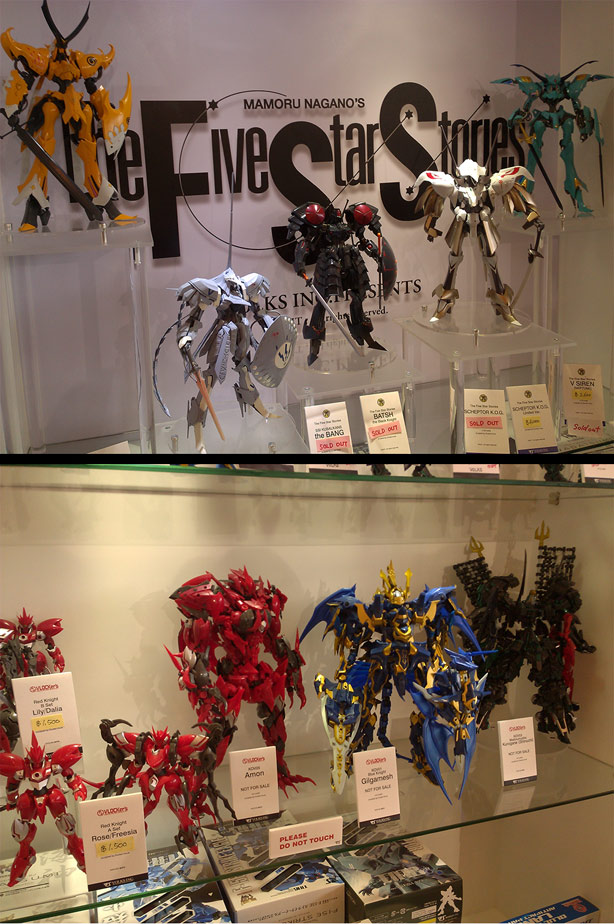 งานโมเดลความละเอียดสูงยันไส้ในอย่าง FIVE STAR STORY (รูปบน) ก็มีมาขาย (ราคาโหดสัส) และสินค้าไลน์ใหม่ “VLOCK” (รูปล่าง) ที่เป็นการนำเอาโมเดลหลายๆกล่อง มาประกอบเป็นหุ่นตามจินตนาการ โดยมีโซนให้ลองเล่น ด้วยในงาน แต่ไม่สะดวกครับ เลยไม่ได้ถ่ายภาพตอนประกอบมาให้ชมกัน ขออภัย…