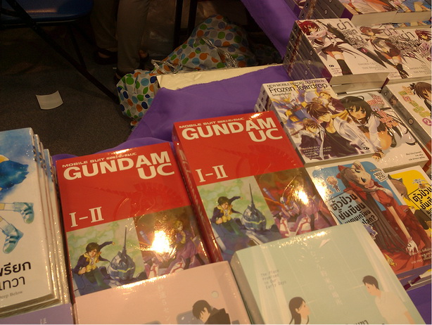 บูธของทาง“อนิแม็ก”เอง ก็มีนวนิยายแปลมาหลายเรื่องใหม่ๆมาวางขายในงานนี้โดยเฉพาะครับ แต่ที่ชาวกันดั้มอย่างแอดมินและหลายๆคนไม่ควรพลาด และ ยังเป็น DAMAGE ที่แอดมินโดนเพียงอย่างเดียวในงานนี้ คือ “นิยาย กันดั้ม ยูนิคอร์น” และ “นิยายกันดั้ม วิงก์”…ค่าเสียหาย 625 บาทครับ (ที่ซื้อมาดอง ไม่มีเวลาอ่าน 555)