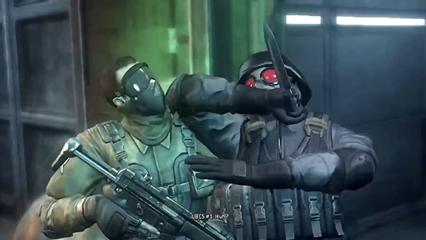 ที่ห้องทดลองใต้สถานีตำรวจแรคคูนซิตี้ พวกของ Hunk ก็ได้พบกับ ดร.เบอร์กิ้น โดยการเจรจาต่อรองขอตัวอย่างไวรัสของ Hunk ไม่เป็นผล ทำให้เกิดการต่อสู้กัน จนทำให้ดร.เบอร์กิ้นถูกระดมยิงจนบาดเจ็บสาหัส และใกล้ตาย ส่วนพวกของ Hunk ก็ได้ตัวอย่างตามมอบหมาย..