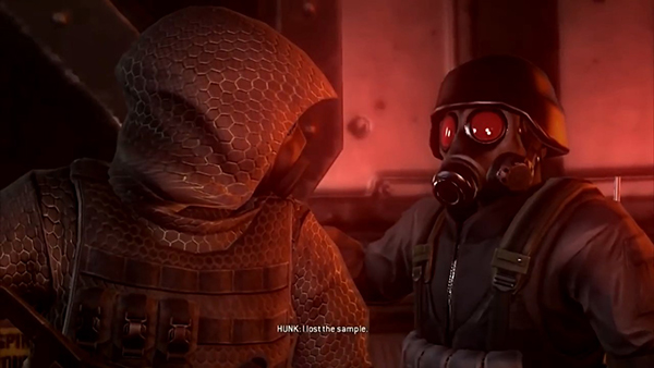 Hunk จึงสั่งให้ลูกทีมบางส่วนหนีไปก่อน ส่วนตัวเขา และลูกทีมที่เหลือ มีภารกิจที่ต้องเก็บเอาตัวอย่างที่เหลือ กลับไปให้ได้
