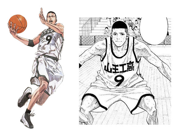 โมริชิเงะ ฮิโรชิ ได้แรงบันดาลใจในการออกแบบมาจาก Shaquille O’Neal หรือ “แชค” (Shaq)นักบาสเกตบอลแห่ง NBA ราชานักดั้งก์อีกหนึ่งคนที่มีชื่อเสียงมากที่สุด