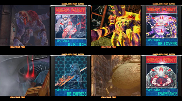 ระหว่างทาง นอกจากกองทัพซอมบี้แล้ว เคท และ เจมส์ ก็ต้องเจอกับสัตว์ประหลาดระดับบอสอย่าง “จัซติส” (Justice-Type-0053) สิ่งมีชีวิตกลายพันธุ์ขนาดยักษ์ , “เดอะ เลิฟเวอร์” (The Lovers-Type-6805) แมงมุมทาลันทูล่ายักษ์ , “เดอะ เอมเพรส” (The Empress-Type-1210) สิ่งมีชีวิตกายพันธุ์ที่มีความคล่องตัวสูง และอึดถึกทน และ “เทมเปอร์แรนซ์” (Temperance-Type 0483/Tarot No. XIV)