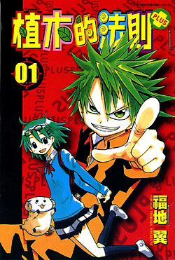 ภาพหน้าปกหนังสือการ์ตูนเรื่อง The Law of Ueki Plus ฉบับภาษาญี่ปุ่นที่แต่งโดยอ. Tsubasa Fukuchi เช่นเดียวกัน