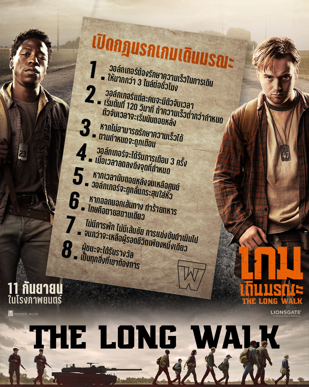 คอหนังชาวไทยเตรียมมุ่งหน้าสู่เกมเดินตายไร้เส้นชัยที่ทุกก้าวและทุกไมล์ต้องเดิมพันด้วยชีวิตใน “The Long Walk เกมเดินมรณะ” 11 กันยายนนี้ ในโรงภาพยนตร์