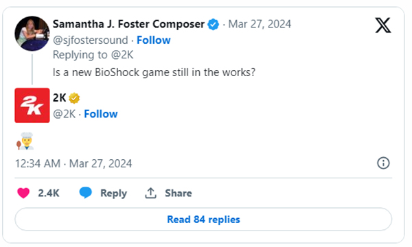 ย้อนกลับไปเมื่อวันที่ 26 มีนาคม 2024 ถือเป็นช่วงเวลาครบรอบ 11 ปี ของเกม BioShock เกมเดินหน้ายิงที่เนื้อเรื่องสุดเข้ม งานศิลป์สุดเจ๋ง ซึ่งเมื่อมีคนถามว่า ตัวเกมจะออกภาคใหม่ได้หรือยัง ทาง 2K ตอบด้วยสติ๊กเกอร์ “พ่อครัว” ในทวิต ในภาษาอังกฤษคือ Cooking ถ้าตีความแบบแสลงก็คือ กำลังปรุง กำลังทำอยู่นั่นเอง