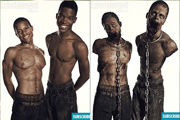 Danai Gurira ผู้รับบท มิชอน ถ่ายรูปกับเพื่อนนักแสดง แอนดรูว์ ลินคอล์น และ นอร์แมน รีดัส