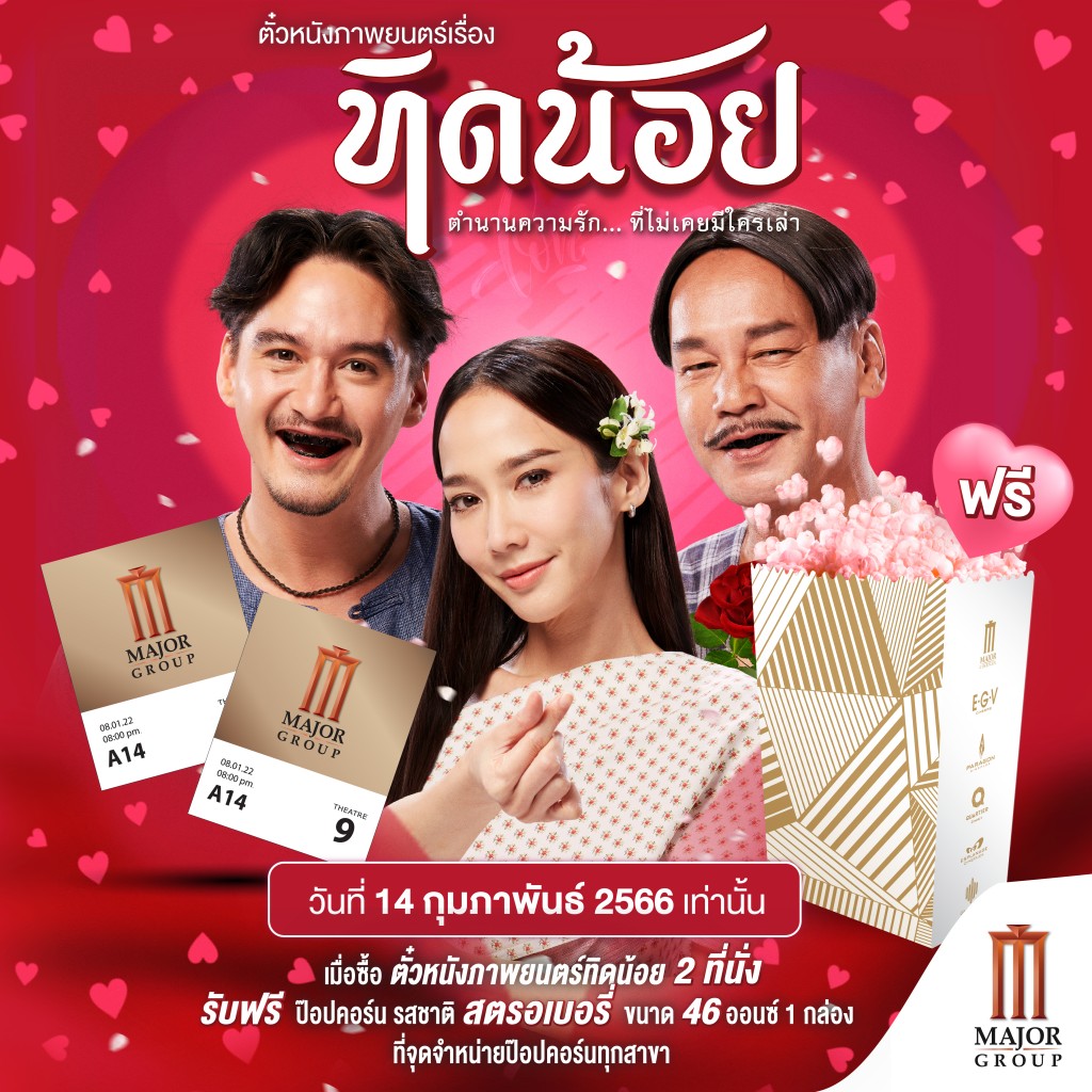 อย่าพลาด!!!!เฉพาะวันอังคารที่ 14 กุมภาพันธ์ วันวาเลนไทน์ วันเดียวเท่านั้น มาเป็นคู่ดู “ทิดน้อย” รับฟรี!!!ป๊อปคอร์น สตรอว์เบอร์รี่ ที่โรงภาพยนตร์ “เมเจอร์ ซีนีเพล็กซ์” ทุกสาขา