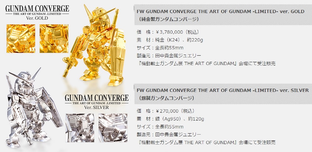 อันนี้ไม่ใช่กันพลา แต่ขอพูดถึงหน่อย เพราะว่ามันแพงระยับหลักล้านกันเลย กับ “GUNDAM CONVERGE THE ART OF GUNDAM-LIMITED-ver.GOLD” ที่มีราคา “3,780,000 เยน” หรือราวๆ “1 ล้าน 1 แสนบาทไทย” นั่นเอง ก็สมควรอยู่พวกเล่นทองจริง(24k) เงินจริง มาทำนี่นะ…ใครเงินถึง ก็จัดกันไปละกันนะครับ