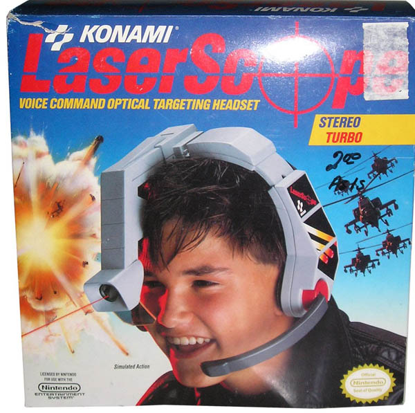 อุปกรณ์สวมหัว พร้อมแท่นยื่นมาบริเวณตา เหมือนหลุดมาจากหนังไซไฟยุคเก่าๆนี้ พัฒนาโดย Konami และทำมาเพื่อเกม Laser Invasion วิธีการใช้ก็คือให้เราสวมเจ้านี้ และมองไปที่เป้าหมาย จากนั้นก็พูด Fire! เพื่อเป็นการยิง คอนเซปอาจดูดี แต่แท้จริงแล้วมันก็คือการนำจอยปืน มาแปลงเป็นอุปกรณ์สวมหัวเท่านั้น แถมปัญหายิงไม่ติดก็ยังเหมือนเดิม และไอ้คำพูดว่า Fire จริงๆคือ เราพูดอะไรก็ได้ มันก็ยิงเหมือนกันแหละ…