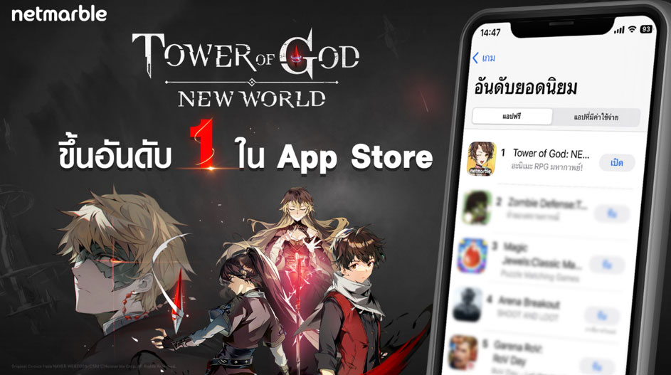 กรุงเทพฯ, ประเทศไทย (วันที่ 26 กรกฎาคม พ.ศ. 2566) – ผู้พัฒนาและให้บริการเกมมือถือ เน็ตมาร์เบิ้ล รู้สึกตื่นเต้นเป็นอย่างยิ่งที่จะประกาศว่า เกม Tower of God: New Worldขึ้นแท่น ‘อันดับ 1’เกมฟรียอดนิยม บน App Storeในประเทศไทยภายในเวลาไม่กี่ชั่วโมงหลังเกมเปิดให้บริการอย่างเป็นทางการ อีกทั้งยังขึ้นอันดับหนึ่งทั้งในประเทศเกาหลี ไต้หวัน และอินโดนีเซียอีกด้วย !