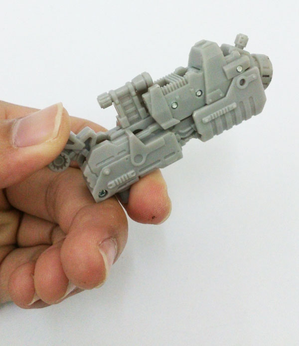 ยกส่วนโครงรถด้านบนที่พับไว้ตั้งแต่เริ่ม เข้าไปสอดไว้ที่ด้านหลังของตัวหุ่นเหมือนในรูป