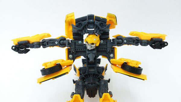 ตัวรถเป็นสีเหลืองคาดลายด้วยสีดำ ไม่ว่าจะด้านหน้า ด้านหลัง ด้านข้าง หรือด้านบน ทำรายละเอียดได้สมจริงเหมือนกับโมเดลรถคาเมโร่ของจริงเลยทีเดียว ได้เวลาแปลงร่างกันแล้วครับ