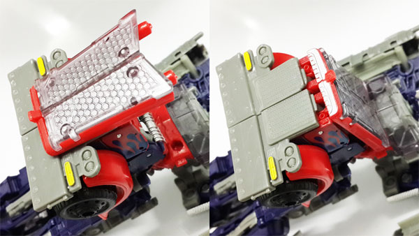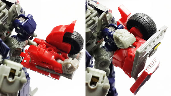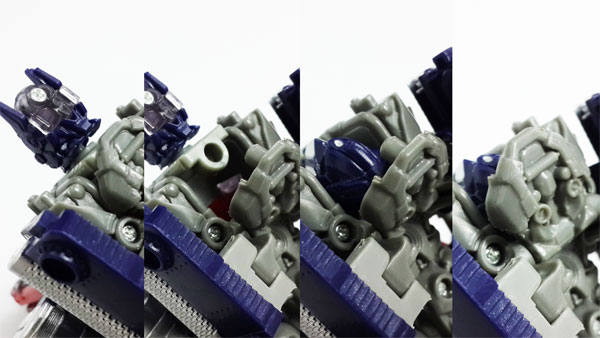 ประกบแขนแดงกลายเป็นกระโปรงหน้ารถ แล้วเลือนขึ้นไปปิดด้านบนแขนน้ำเงิน