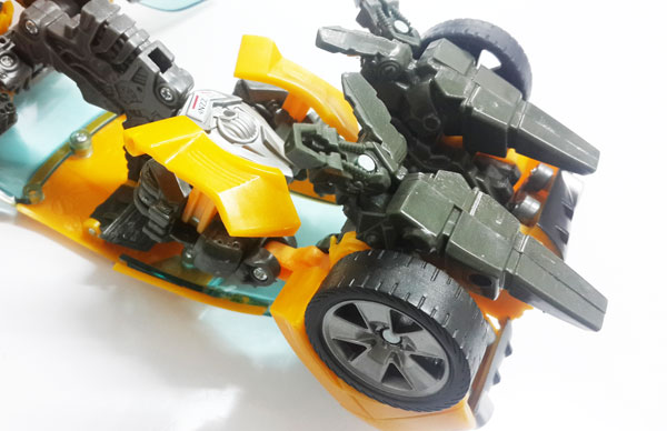 เริ่มแปลร่างโดยการบิดไฟหน้ารถให้ทำมุมเป็นตัววี เพิ่มพื้นที่ในการหมุนหัวไหล่