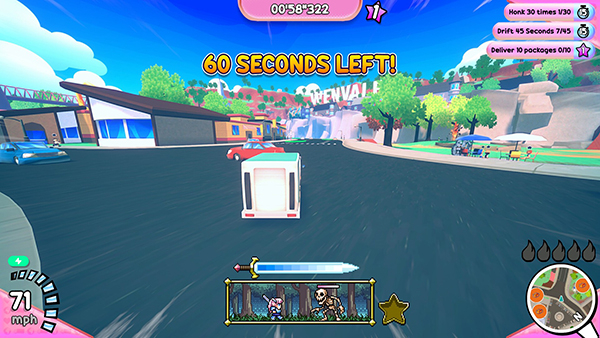 ผู้เล่นจะต้องปฏิบัติภารกิจขับรถส่งของ หลบหนีการไล่ล่าของเจ้าหน้าที่ตำรวจ และพุ่งชนสิ่งของต่างๆ เพื่อสะสม “พลังงาน” ส่งต่อไปยัง Carissa ในโลกแฟนตาซี