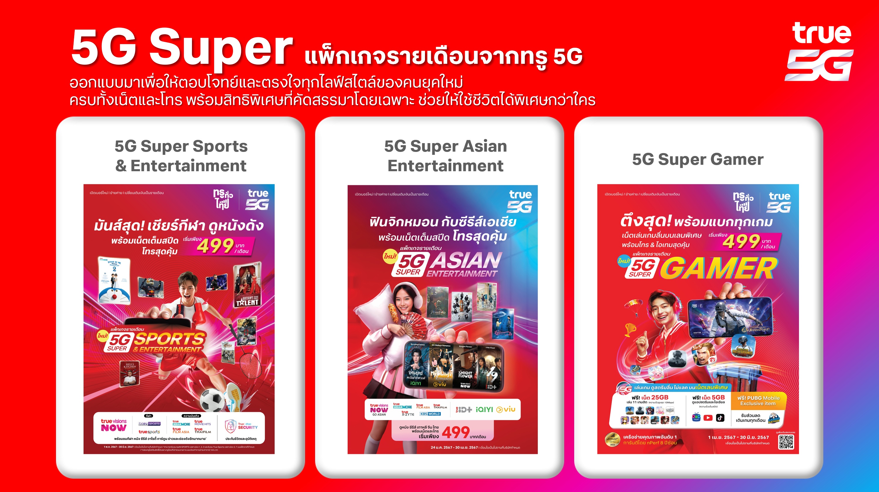 ทั้งนี้ทรูเข้าใจพฤติกรรมและความต้องการของลูกค้าที่ต้องการใช้ชีวิตในแบบที่เป็นตัวเองได้อย่างเต็มที่ นำไปสู่การพัฒนานวัตกรรมบริการที่ต้องตอบโจทย์ตรงใจทุกไลฟ์สไตล์ของคนยุคใหม่ได้อย่างลงตัว ซึ่งแพ็กเกจนี้ อยู่ภายใต้คอนเซ็ปต์ 5G Super ที่มีความหลากหลายเหมาะกับแต่ละไลฟ์สไตล์ให้ลูกค้าเลือกได้ ครบทั้งเน็ตและโทร พร้อมสิทธิพิเศษที่คัดสรรมาโดยเฉพาะ ช่วยให้ใช้ชีวิตได้พิเศษกว่าใครไม่ว่าจะเป็น คอกีฬา คอบันเทิง คอเกม ให้ลูกค้าไปให้สุดตามไลฟ์สไตล์ที่ตนเลือก อาทิแพ็กเกจ 5G Super Sports & Entertainment, 5G Super Asian Entertainment เป็นต้น