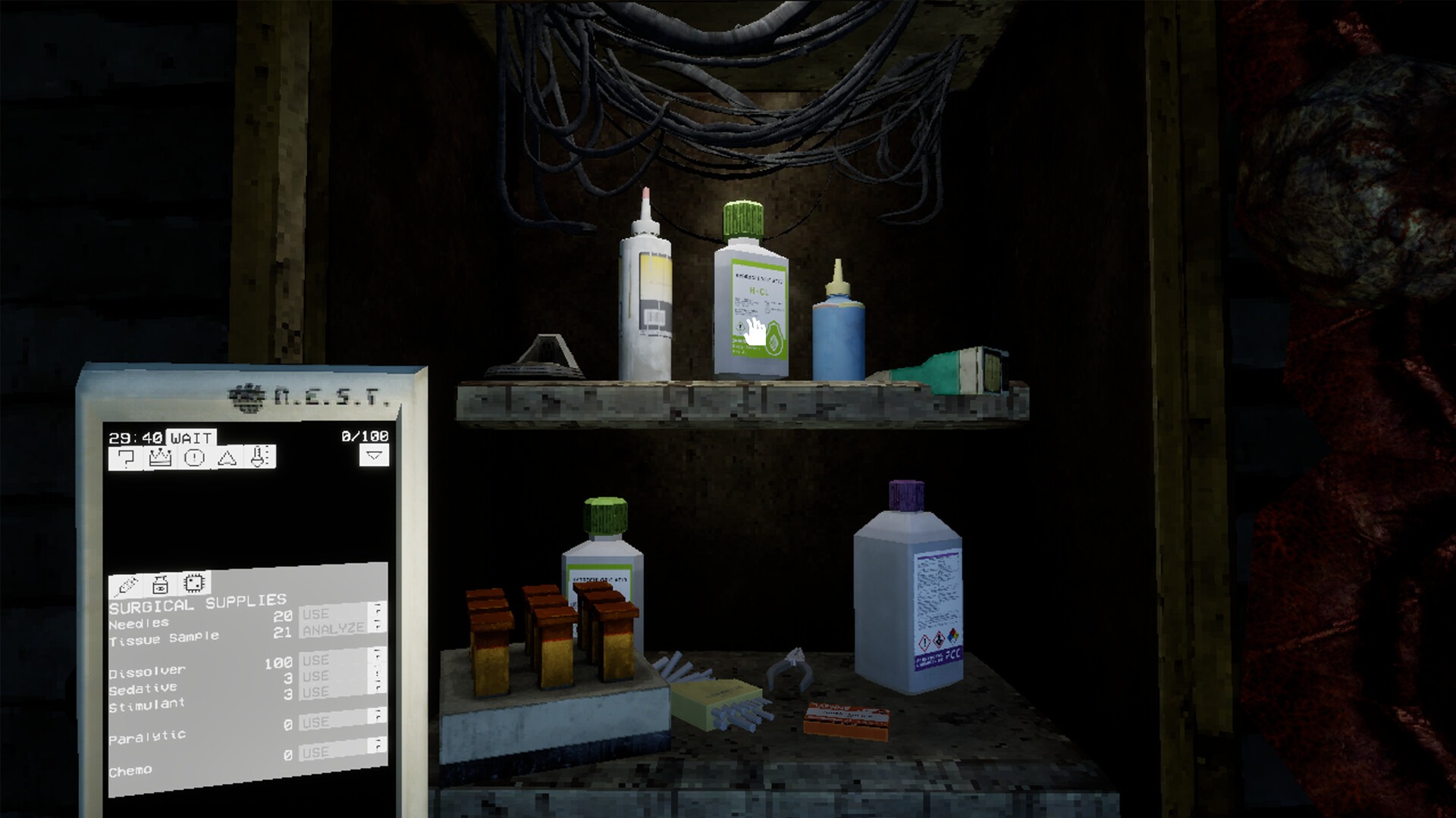 หัวใจของการเล่นคือการใช้ เครื่องอัลตราซาวด์แบบพกพา สแกน ตรวจหาความผิดปกติ และระบุการติดเชื้อก่อนเข้าสู่กระบวนการผ่าตัดสุดสยอง ผู้เล่นต้องค้นหาหรืออัปเกรดเครื่องมือแพทย์ใหม่ ๆ พร้อมทั้งสร้างยาชนิดประหลาดเพื่อรักษาและกำจัดการเจริญเติบโตที่ผิดรูป ซึ่งทุกการตัดสินใจล้วนมีผลกระทบอย่างรุนแรงต่อเส้นทางการเอาชีวิตรอด