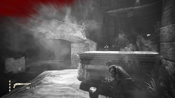 การต่อสู้ยังคงเน้นการใช้ปืนเป็นหลักซึ่งหาเก็บได้ในระหว่างฉาก โดยปืนหลักๆก็มีให้ใช้เลือกใช้ครบเช่น ปืนพก ปืนกล ลูกซอง ไรเฟิล เทคนิคการเล่นให้เน้นหลบเข้าที่กำบัง แล้วค่อยหาจังหวะกด L2 เล็งยิงมุมมองผ่านหัวไหล่ หรือจะกดยิงเลยก็จะเป็นการชูมือยิงขู่จากที่กำบัง เกมส์นี้จะไม่มีพลังชีวิตถ้าโดนโจมตีแล้ววิ่งหาที่หลบได้ ก็จะหายบาดเจ็บได้เอง แต่ถ้าโดนรุมยิงต่อเนื่องเรื่อยๆจนหน้าจอเป็นสีขาวดำก็จะตายทันที