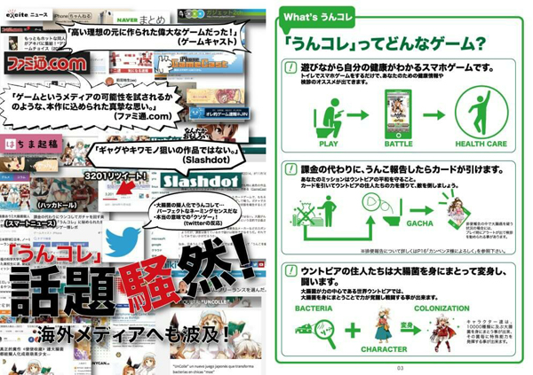 ร่ายมาซะยืดยาว (เผื่อคนไม่เก็ทว่าเกมแนวนี้มันเป็นยังไง) ก็เพื่อที่จะบอกว่า ตอนนี้เกมแนวนี้กำลังระบาดหนักมากในญี่ปุ่น ทั้งเรือรบ / ดาบ / ปืน /รถแข่ง / วัด ศาลเจ้า บลาๆๆๆ ก็เอามาทำเป็นสาวน้อยหนุ่มหล่อสุดโมเอะกันมามากมาย มีฐานแฟนคลับที่เหนียวแน่น แม้แต่วงการสาธารณะสุขของญี่ปุ่น ก็ได้เริ่มหยิบเอาเกมแนวสุ่มกาชามาเป็นจุดขายซึ่งแปลกและแหวกTheme ไปเลย เพราะเป็นเกมที่พูดถึง “อุนจิ” กากของเสียที่อยู่ในลำไส้ใหญ่ของมนุษยชาตินี่เอง กับเกมที่ชื่อว่า The Unko Collection หรือ UnColle