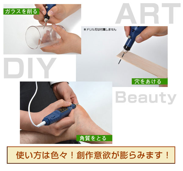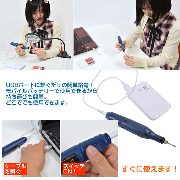 เจ้าสิ่งนี้ มันคือ ปากกาสว่านไฟฟ้า รูปแบบ USB เพียงแค่คุณเชื่อมต่อสาย USB กับเครื่องคอมพิวเตอร์ของคุณ หรือ แบตเตอร์รี่สำรองมือถือ ก็สามารถใช้งานได้ทันที ซึ่งการหมุนของเจ้าสว่านตัวนี้ ยังสามารถปรับระดับความเร็วจากต่ำ ปานกลางไปได้จนถึงความเร็วสูงสุด 10,000 รอบต่อนาทีเลยทีเดียว