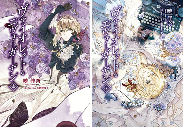 Violet Evergarden เป็นนิยายไลท์ โนเวลที่แต่งโดยอ. Kana Akatsuki วาดภาพประกอบโดยคุณ Akiko Takase ตีพิมพ์เมื่อวันที่ 25 ธันวาคมปี 2015 ปัจจุบันมีฉบับรวมเล่มออกมาจำหน่าย 2 เล่มด้วยกัน จนกระทั่งผลงานเรื่องนี้ได้ถูกสร้างเป็นอนิเมชั่นทีวีซีรีส์ อำนวยการสร้างโดยทาง Kyoto Animation