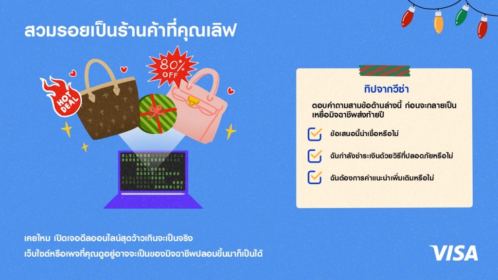 ทิปจากวีซ่า: ถามตัวคุณเองด้วยคำถามง่าย ๆ สามข้อนี้ ก่อนจะกลายเป็นเหยื่อมิจฉาชีพส่งท้ายปี