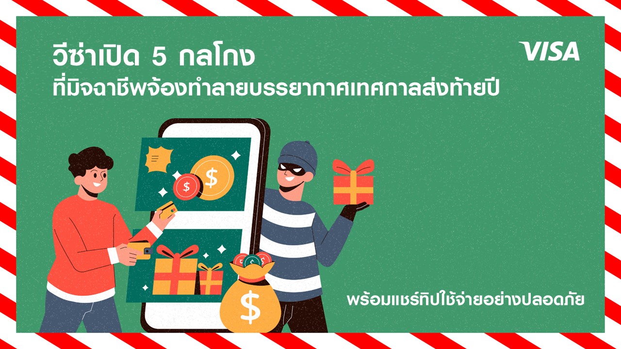 วันนี้ วีซ่า จะมาเตือนภัยห้าสุดยอดกลโกงที่เหล่ามิจฉาชีพพยายามฉวยความสุขในเทศกาลวันหยุดไปจากคุณ พร้อมแชร์ทิปดี ๆ ที่จะช่วยให้คุณได้ใช้ช่วงเวลาแห่งความสุขกันอย่างปลอดโปร่งโล่งใจ ซึ่งข้อมูลดี ๆ แบบนี้ได้รับการแบ่งปันมาจากทีมด้านความเสี่ยงและควบคุมระบบนิเวศทางการชำระเงินของวีซ่า (Visa PERC) ที่จะช่วยให้พวกเรารู้เท่าทันเล่ห์มิจฉาชีพกัน