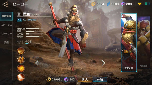 วูคอง / เห้งเจีย เกมนี้มีท่าอัลติคือขี่เมฆบิน วิ่งข้ามแผนที่ได้ในระยะเวลาสั้นๆ แถมยังกระโดดจาเมฆลงมาสร้างความเสียหายได้ อย่างโกง!