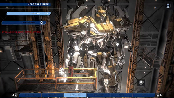 ตัวหุ่นที่เอามาลงสนามแต่ละตัว สามารถ Customization ปรับแต่งชิ้นส่วนได้มากมาย ซึ่งแต่ละชิ้นส่วนก็จะมีค่าสเตตัส ความสามารถแฝงติดมาด้วย อีกทั้งยังสามารถสร้างชิ้นส่วนต่างๆที่มีค่าสเตตัสระดับพิเศษ จากการปลดล๊อกตามเงื่อนไขของฉาก รวมไปถึงความสามารถนักบินที่สามารถแยกออกไปได้สองสาย ได้แก่สายยิง และสายโจมตีรระยะประชิด