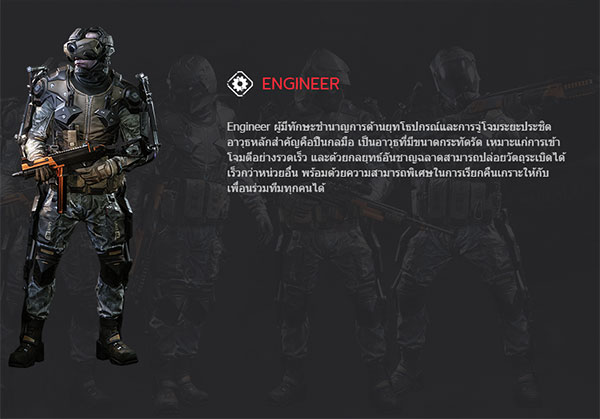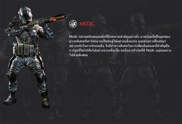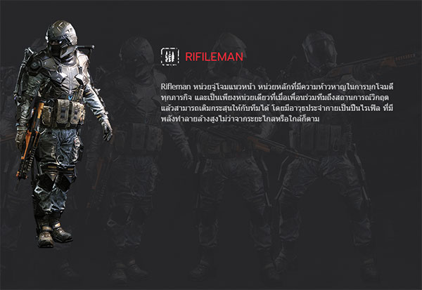 สำหรับตัวเล่นที่ผู้เล่นสามารถเลือกเล่นได้นั้นจะมีอยู่ด้วยกัน 4 บทบาท คือ Rifleman, Medic, Engineer และ Sniper ซึ่งรูปแบบการเล่นและหน้าที่ในทีมนั้นก็จะแตกต่างกันไปไม่ซ้ำกัน