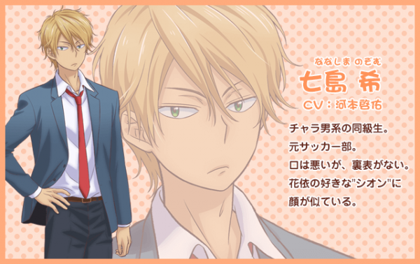เป็นหนุ่มซึนที่มีนิสัยแบบปากไม่ตรงกับใจ มีหน้าตาคล้ายๆ กับชิออนตัวละครที่คาเอะชื่นชอบอีกด้วย