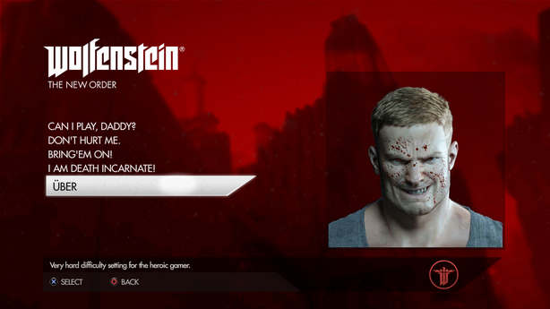 “ใน The New Order นั้นจะมีระดับความยากและท้าทายกับผู้เล่น ที่ 5 ระดับ และ “เมื่อตัวละครที่ผู้เล่นบังคับในเกม ตายขึ้นมา ไม่ได้แปลว่าเกมโกงคุณ แต่เป็นความผิดของคุณ ที่อ่อนซ้อมเองครับ…”